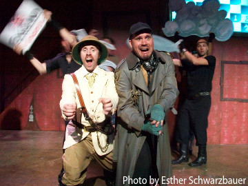 I was entertained immensely by the first two performances of You’ve Ruined a Perfectly Good Mystery, a play I wrote with Rick Stemm that’s appearing at MercLab until the 25th. It was a thrill to see such exemplary work in the actors’ physical humor and character-driven comedy, and in the steampunk-influenced set design by Morgan Boland and costume design by Sydney Krieger. I had been to rehearsals last month and so was familiar with some of the unscripted bits director Sam White and the cast introduced, but there were several bits that were new for me and some overall things I wasn’t expecting but was nonetheless happy with.